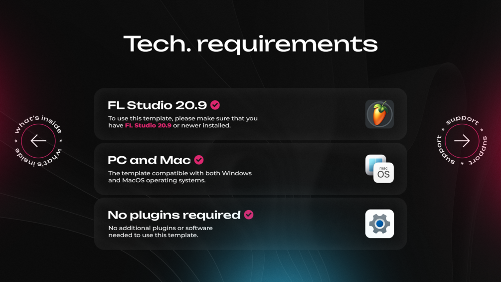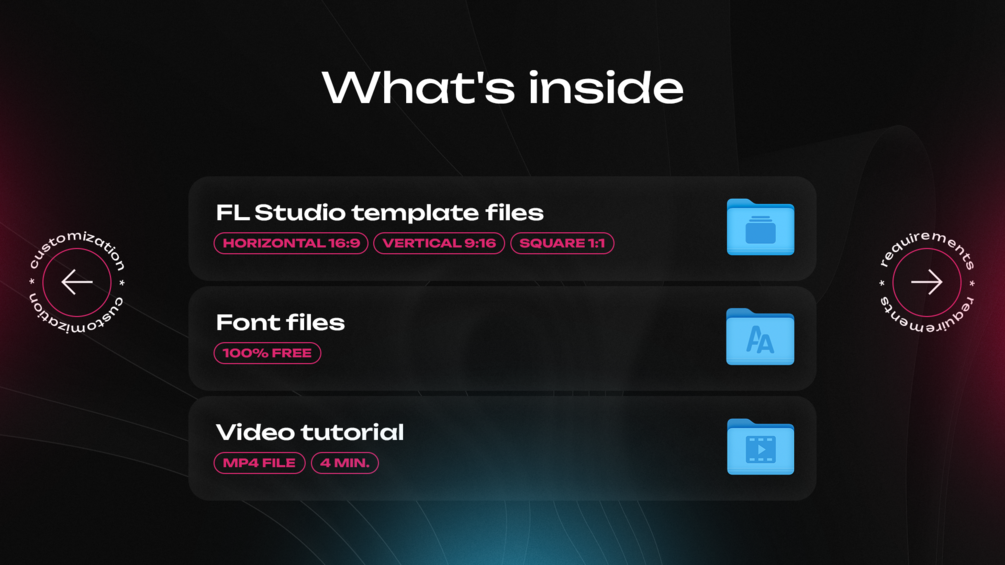 In the archive you will find the video tutorial, FL studio project files, free fonts (in case if the template you chose contains fonts your OS doesn’t have), footages and other resources.
